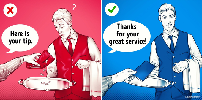 19. Đừng chỉ đưa tiền mà không nói gì với người phục vụ, đây được xem là cách cư xử không lịch sự.
