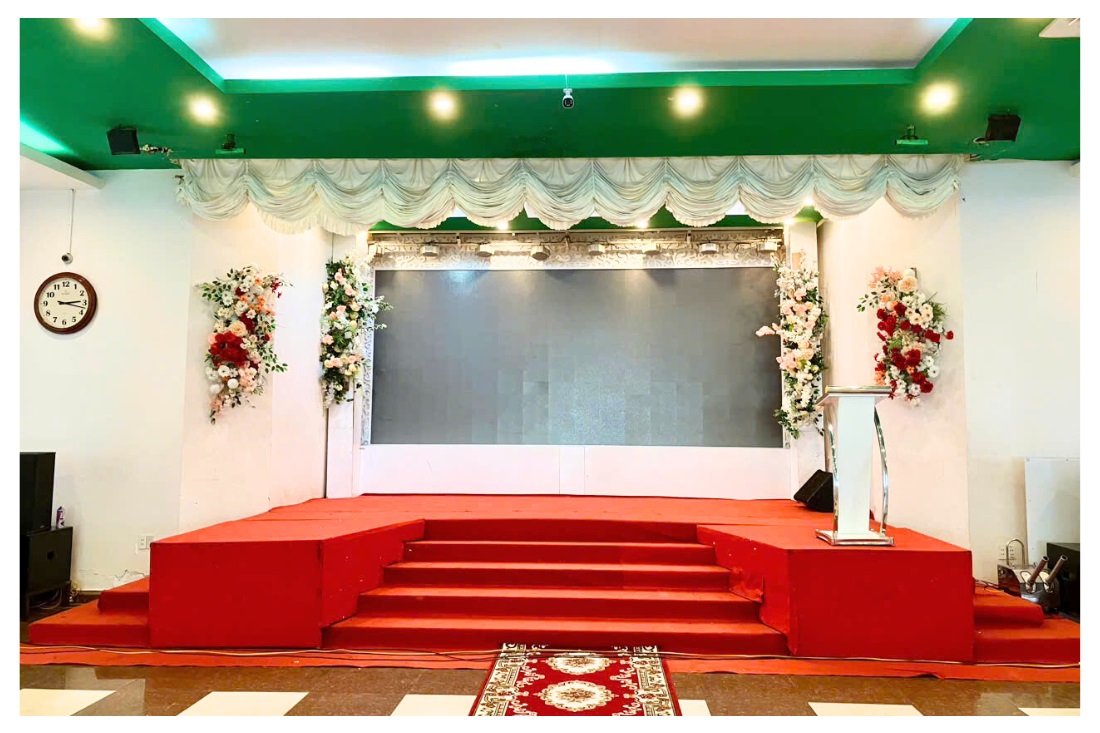 Hiện nhà hàng có 4 hội trường lớn có sân khấu, bố trí bàn ghế có áo ghế và nơ, trang trí cơ bản, có màn hình LED, bục phát biểu, trụ hoa, thảm đỏ đường lên sân khấu, máy lạnh, âm thanh, ánh sáng… đáp ứng được các yêu cầu tổ chức sự kiện, hội nghị, hội thảo chuyên nghiệp.