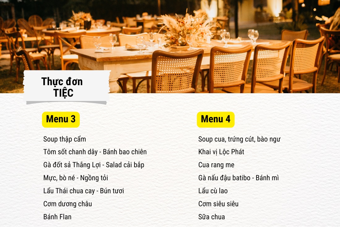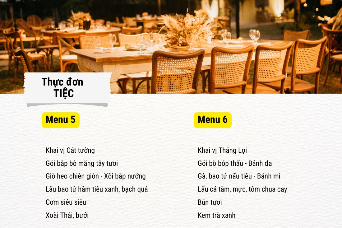 THỰC ĐƠN TIỆC THAM KHẢO TẠI NHÀ HÀNG THẮNG LỢI AN GIANG