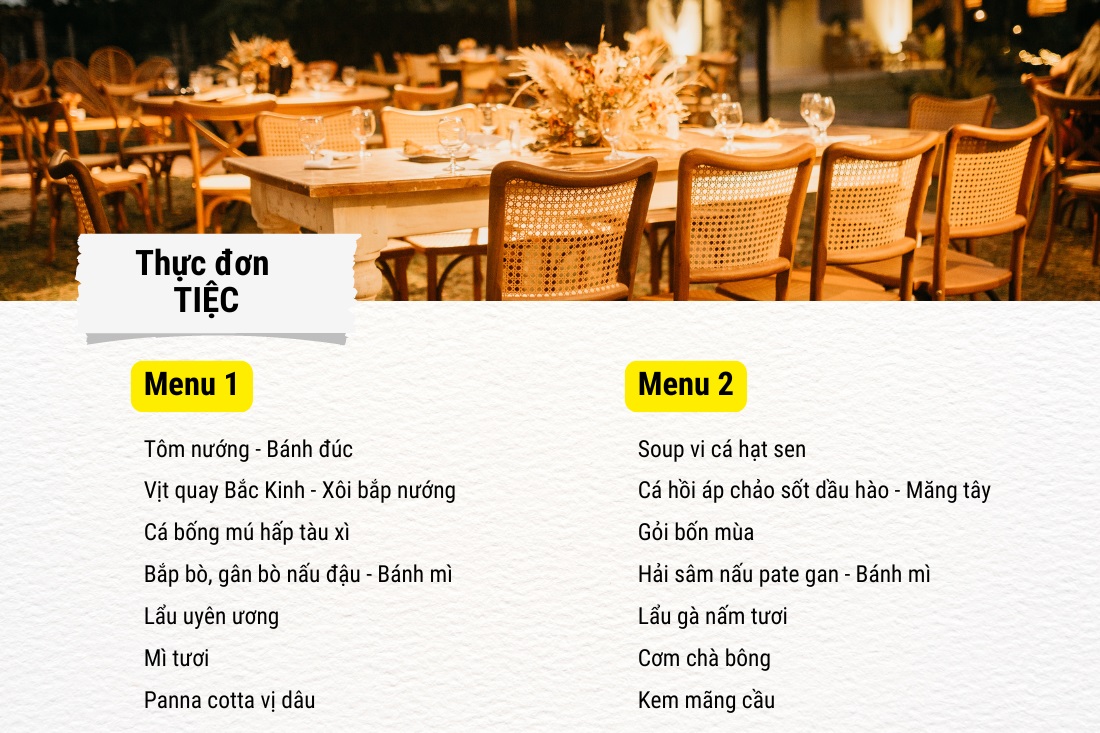 Khi tổ chức tiệc, mỗi chi tiết đều phải được chăm sóc tỉ mỉ để đảm bảo ngày vui thêm hạnh phúc như ý. Không chỉ tiệc cưới, các buổi tiệc liên hoan, hội nghị, họp mặt… cũng thế!
