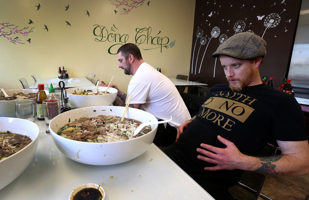 Nữ phóng viên Bethany Jean Clement của tờ The Seattle Times đã đến nhà hàng Đồng Tháp cùng 3 người bạn: đầu bếp Miles James, đầu bếp làm bánh nổi tiếng Matt Tinder và nhà thiết kế đồ họa Chas Roberts. 4 ứng cử viên dắt tay nhau tới chinh phục bát phở địa ngục gồm 2 lít nước phở, hơn 1.8kg bánh phở và 1.8 kg thịt. Nếu chiến thắng mỗi người sẽ có 100USD ăn Tết, thua thì lì xì trước cho chủ quán 40USD mỗi bát.